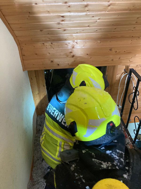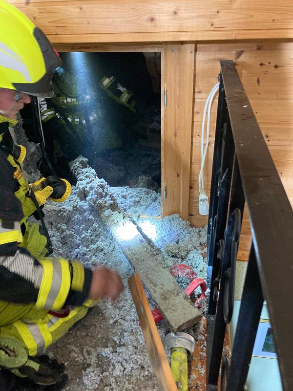 IN einem mit Holzpaneele verkleideten Kniestock kam es zur Wärmeentwicklung, welche zur Rauchentwicklung in der dort vorhandenen Einblasdämmung aus Zelluose führte.