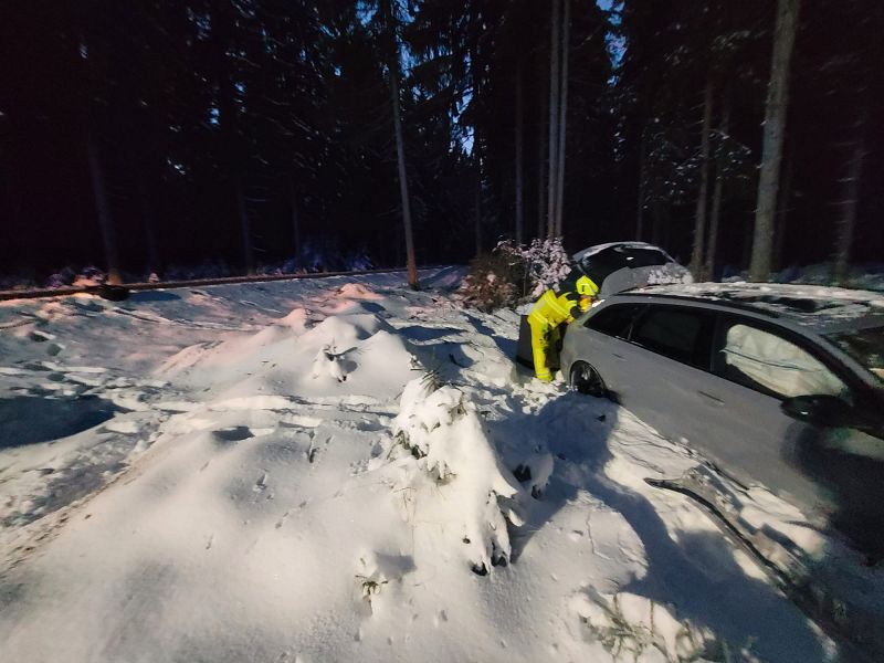 Noch während der Einsatzarbeit beim schweren Verkehrsunfall auf der Staatstraße nach Klingenthal am Nachmittag, wurde den Einsatzkräften an der Absperrlinie in Muldenberg ein Unfall auf der Staatstraße S 302 von Muldenberg nach Schöneck gemeldet.