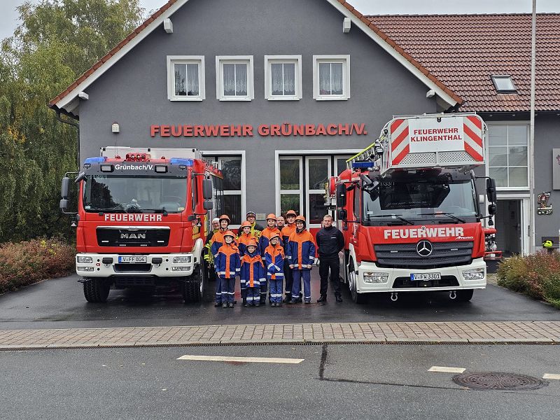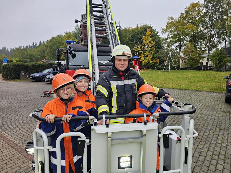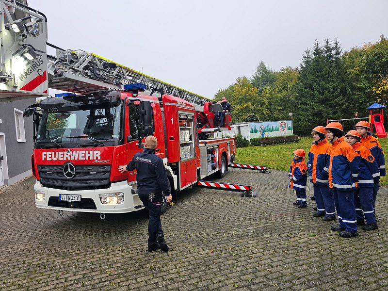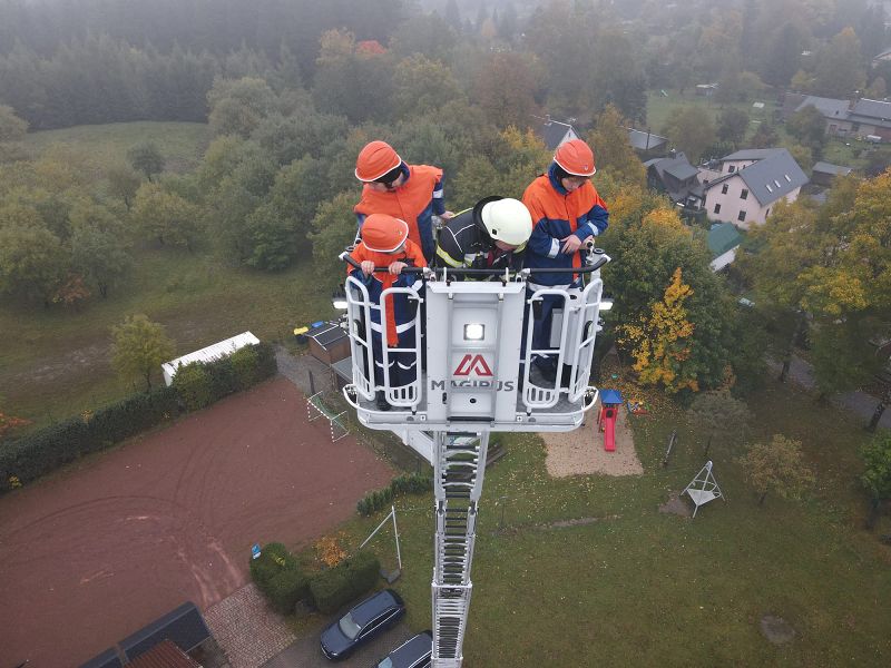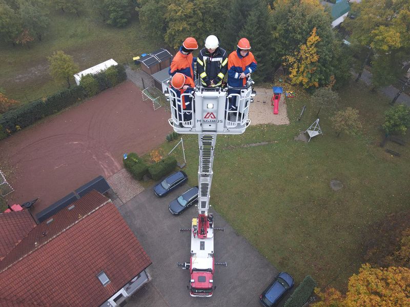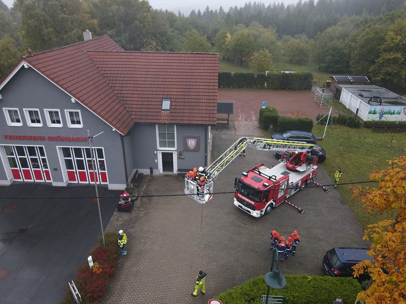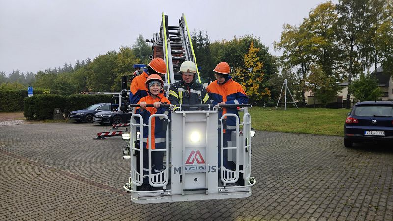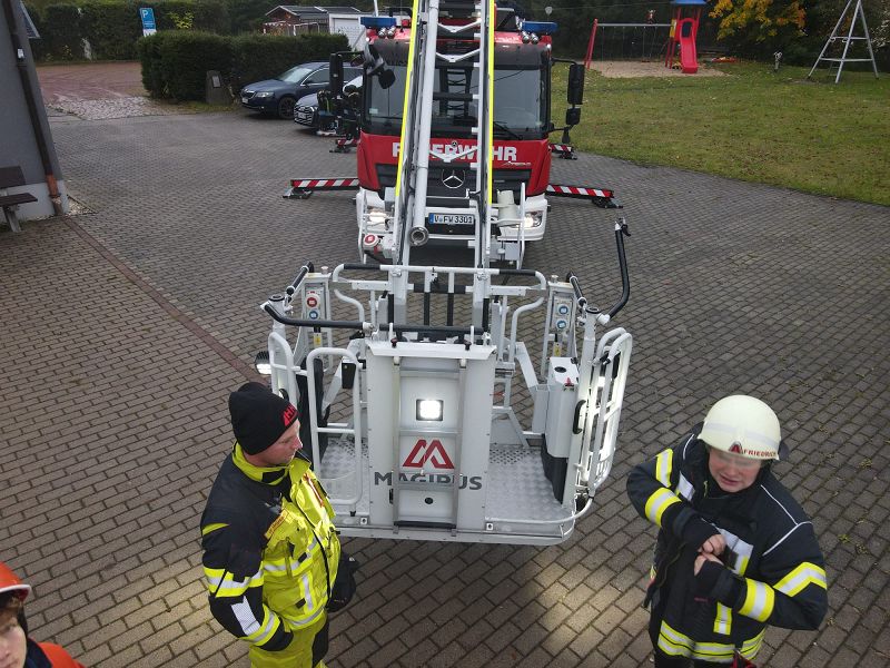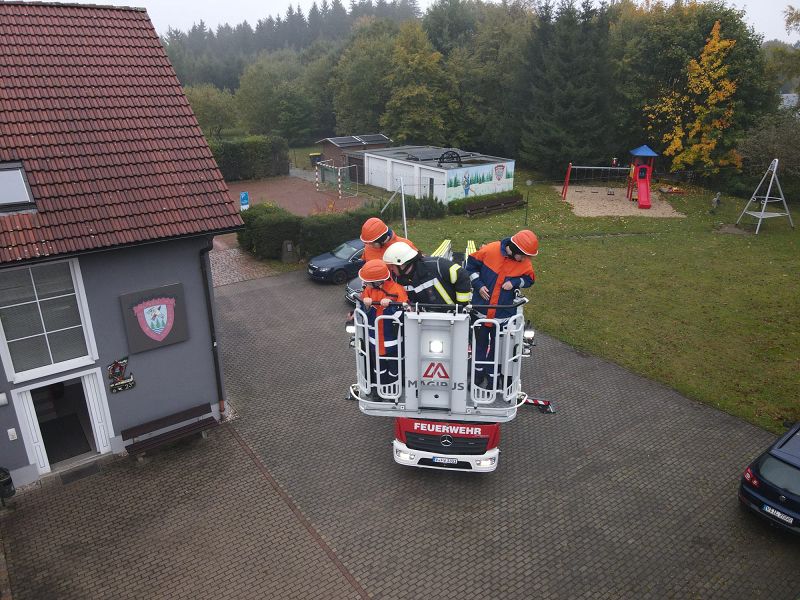 Am Samstagmorgen gab es um acht Uhr für alle Frühstück, mit frischen Semmeln der Bäckerei Frisch und danach ging es gemeinsam ans Gerätehaus, denn da warteten zwei Kameraden der Feuerwehr Klingenthal mit deren Drehleiter auf uns. Nach einer Erklärung des Fahrzeugs, durften alle die wollten einmal hochhinaus und einen Blick von oben auf Grünbach genießen, leider war der Weitblick durch Nebel getrübt. Aber Definitiv ein Highlight für alle.