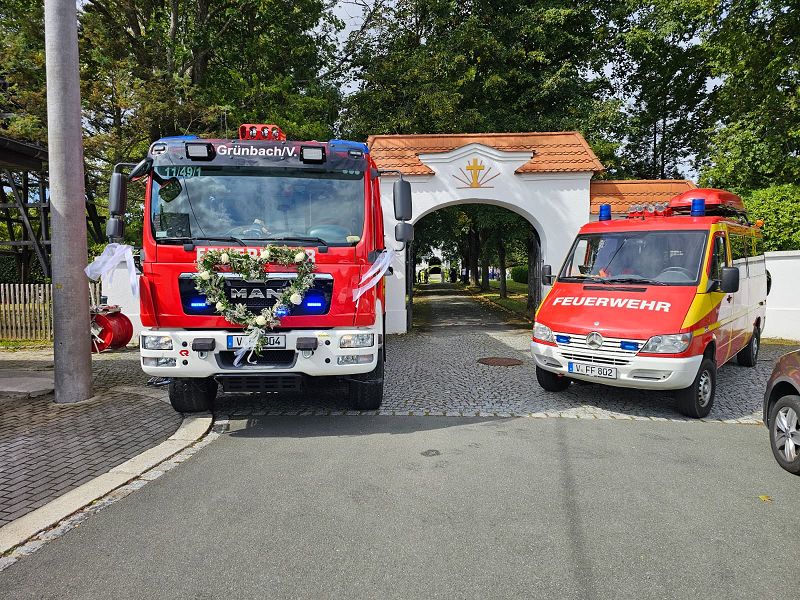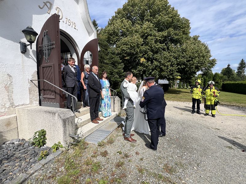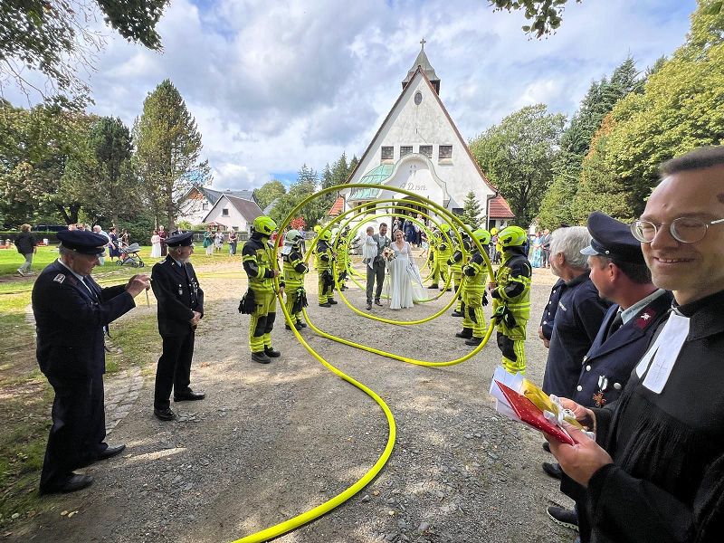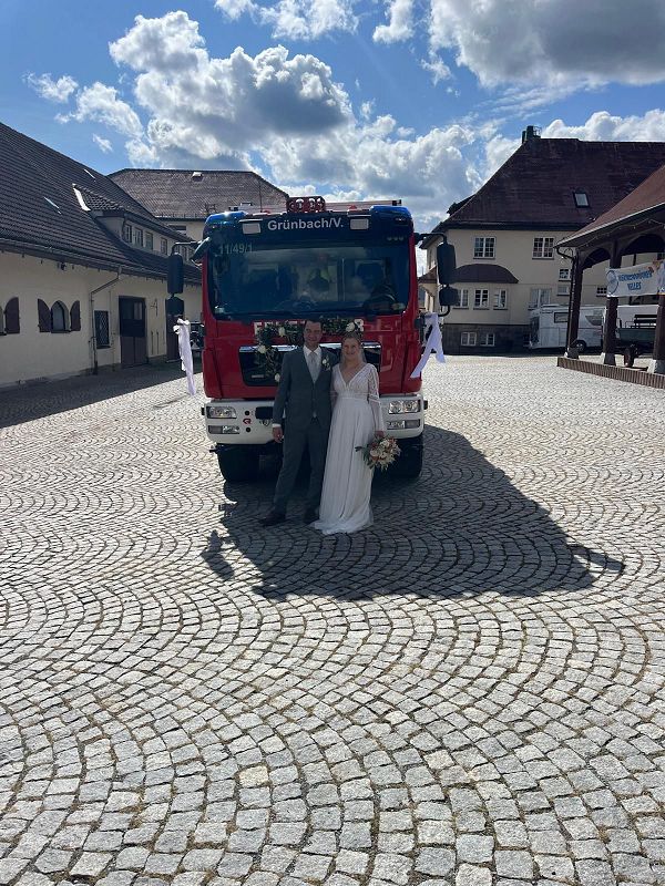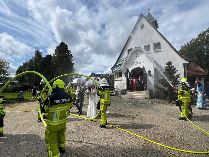 Verheiratet waren die beiden Einsatzkräfte schon zwei Jahre, nun schlossen unser Gemeindewehrleiter Michael Breitfeld mit seiner Alicja auch den kirchlichen Bund fürs Leben. Anlass für die Feuerwehrleute der Grünbacher Feuerwehr, mit dem frisch vermählten Brautpaar die Feuerwehrtaufe durchzuführen.