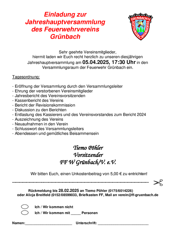 5. April 2025 - Feuerwehrhaus Grünbach