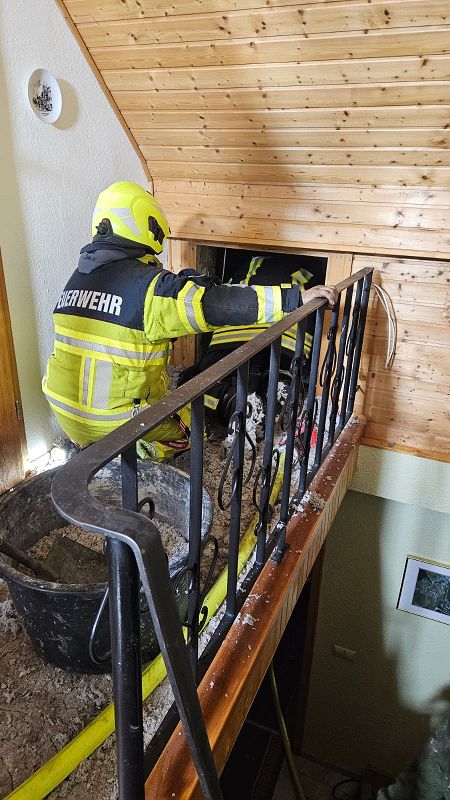 IN einem mit Holzpaneele verkleideten Kniestock kam es zur Wärmeentwicklung, welche zur Rauchentwicklung in der dort vorhandenen Einblasdämmung aus Zelluose führte.