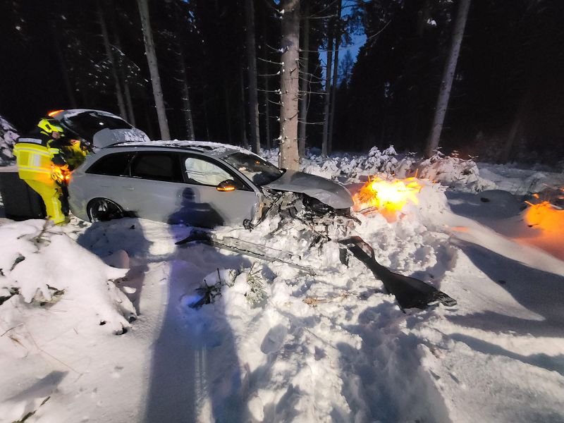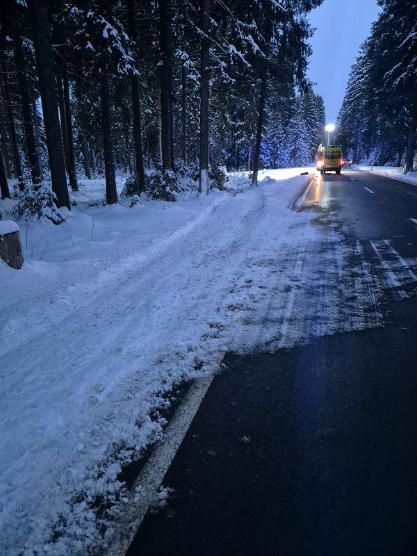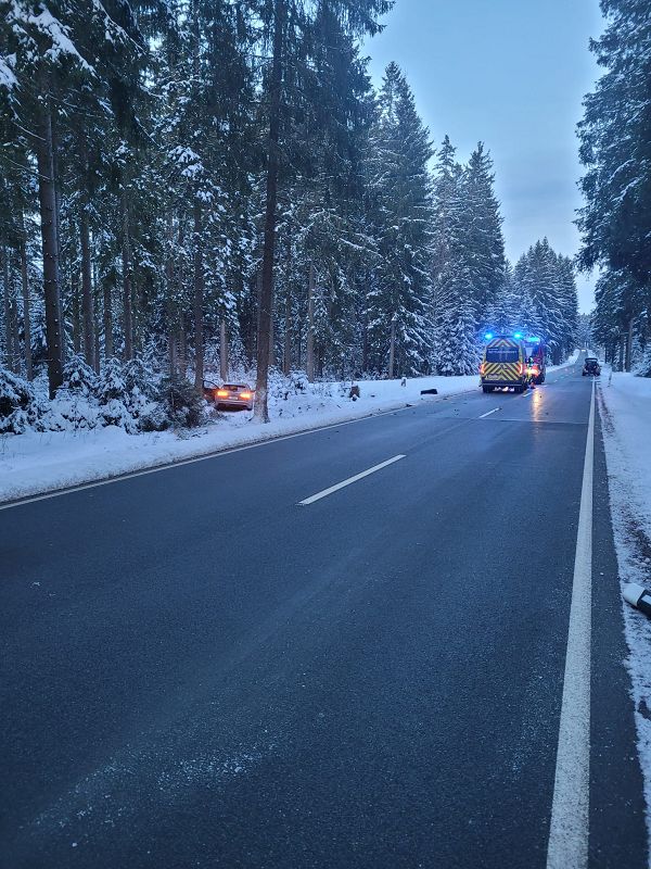 Noch während der Einsatzarbeit beim schweren Verkehrsunfall auf der Staatstraße nach Klingenthal am Nachmittag, wurde den Einsatzkräften an der Absperrlinie in Muldenberg ein Unfall auf der Staatstraße S 302 von Muldenberg nach Schöneck gemeldet.