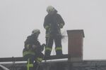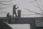 Die Lageerkundung des Einsatzleiters und des anwesenden stellv. Kreisbrandmeisters ergab einen Brand im unteren Drittel des Schornsteines. Der Angriffstrupp begab sich sofort aufs Dach und startete mit den Kehrarbeiten. Durch die extremen Temperaturen kam es zum Totalschaden des Kehrbesens, welcher bei den geschätzten 1000 Grad zerschmolz.