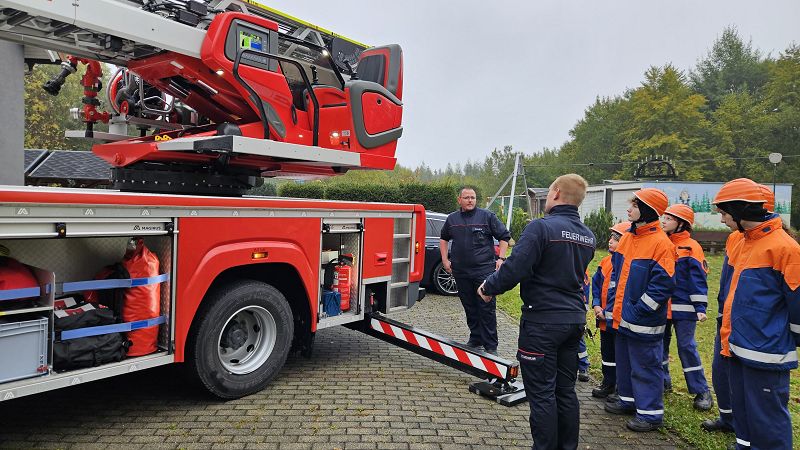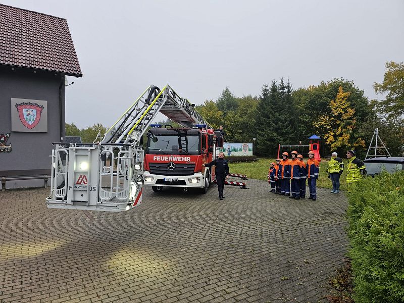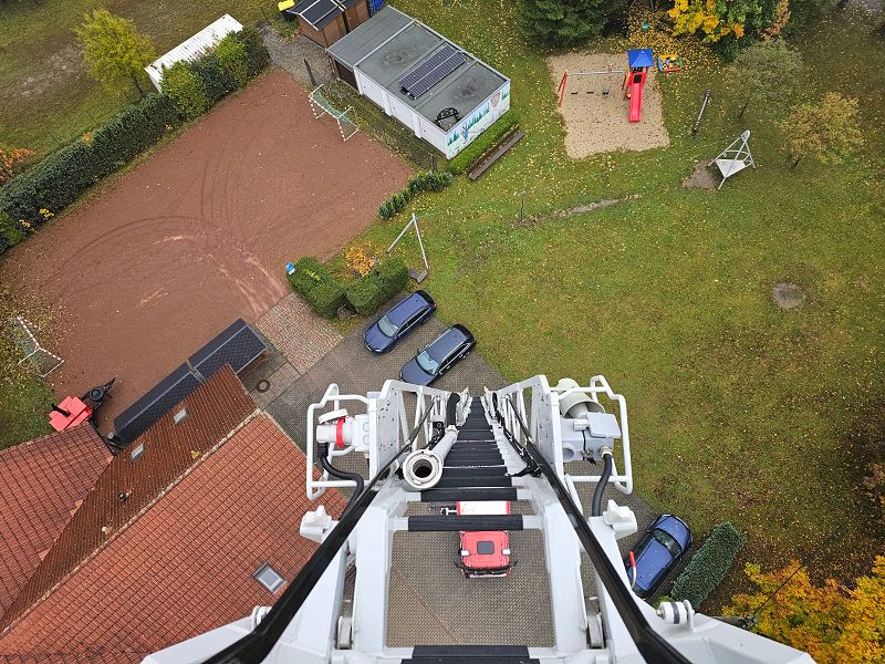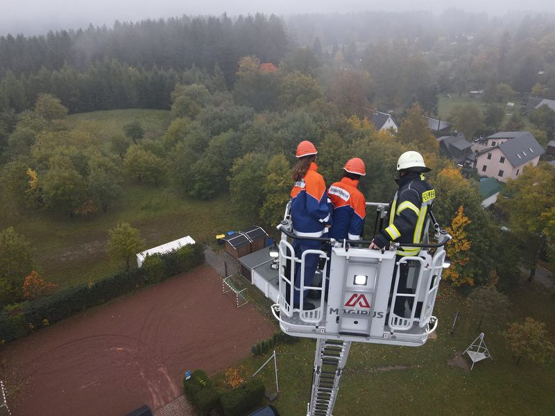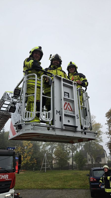 Am Samstagmorgen gab es um acht Uhr für alle Frühstück, mit frischen Semmeln der Bäckerei Frisch und danach ging es gemeinsam ans Gerätehaus, denn da warteten zwei Kameraden der Feuerwehr Klingenthal mit deren Drehleiter auf uns. Nach einer Erklärung des Fahrzeugs, durften alle die wollten einmal hochhinaus und einen Blick von oben auf Grünbach genießen, leider war der Weitblick durch Nebel getrübt. Aber Definitiv ein Highlight für alle.