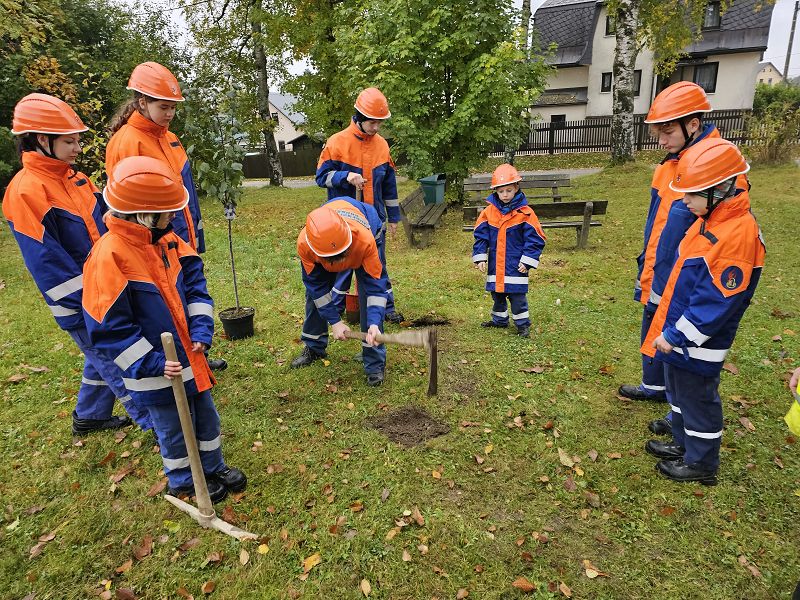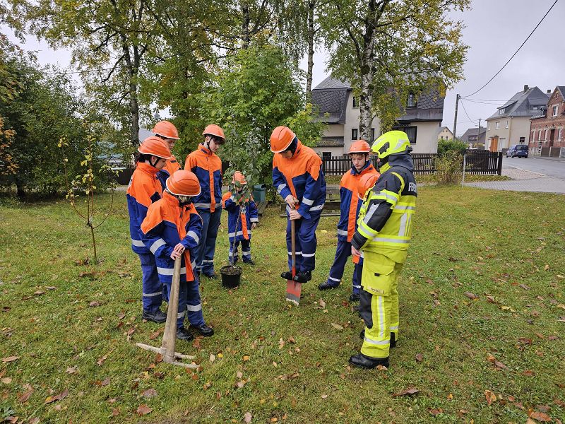 Danach haben wir noch unseren Pflaumenbaum an der Feuerwehr gepflanzt, denn wir waren durch die Jugendfeuerwehr Muldenhammer zur Baumpflanz-Challenge nominiert und das lassen wir uns natürlich nicht nachsagen. Das Ganze haben wir gefilmt und das Video steht auf der Facebook und Instagram Seite der Feuerwehr Grünbach zur Verfügung.