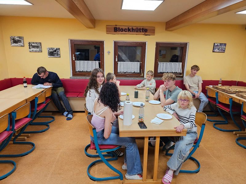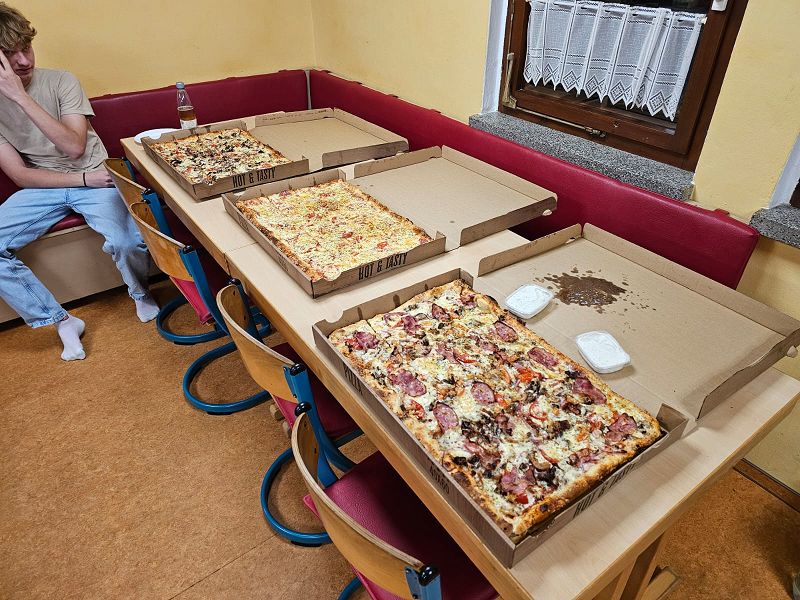 Nach einem gemeinsame Abendessen mit Pizza, welche uns Thomas Geigenmüller sponsorte, Vielen Dank nochmal an dieser Stelle, konnten die Kinder und Jugendlichen die mitgemietete Sauna und den Bade-Zuber nutzen, was für Begeisterung sorgte. Nachdem alle wieder trocken und umgezogen waren, ging es für die Kleinsten zeitnah ins Bett und auch bei den Größeren kehrte Ruhe ein.