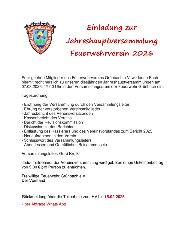 7. März 2026 - Feuerwehrhaus Grünbach